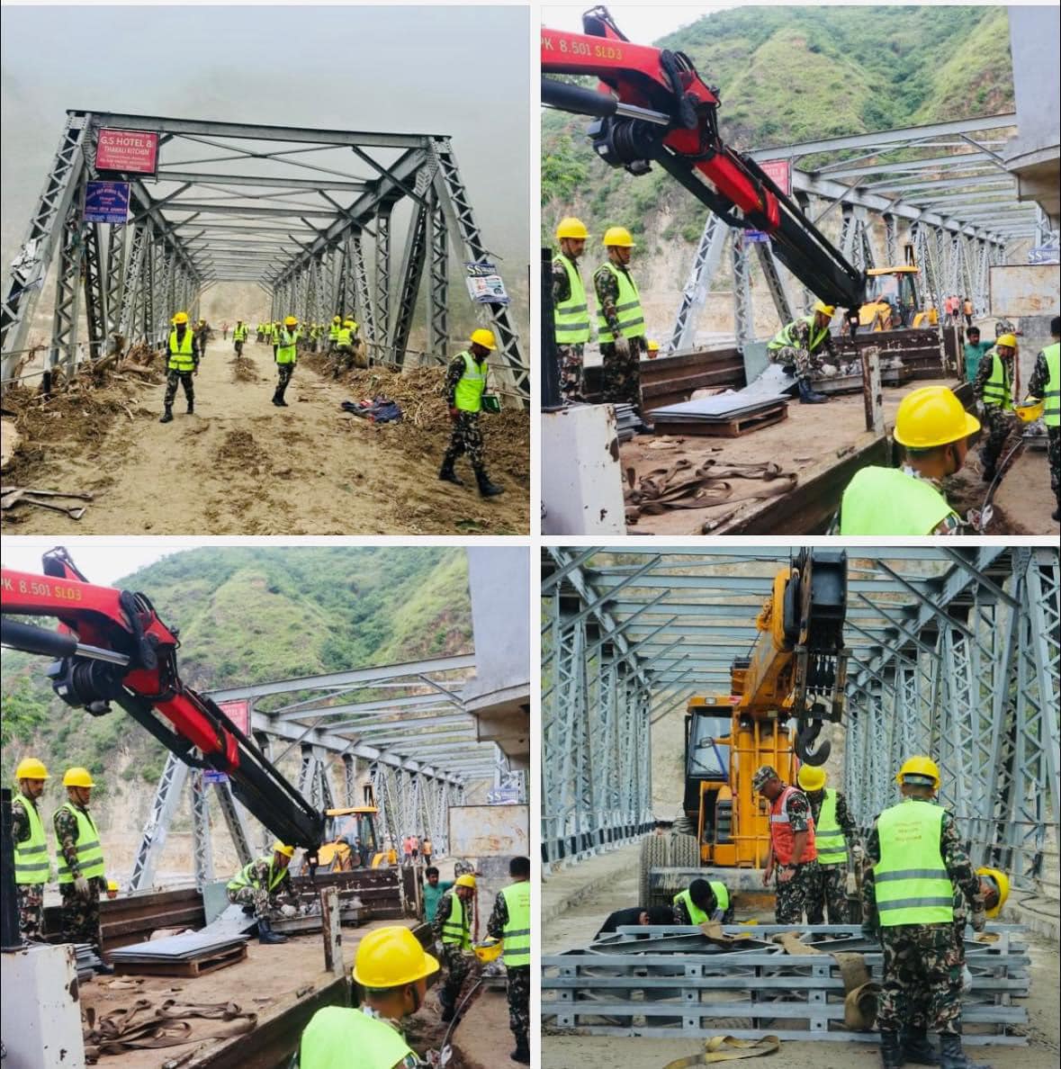उक्त पुलको भाग रामेछापतर्फ जोडिएको र त्यसको थप काम सकेर परीक्षण गरी सवारी अवागमन गर्न तीनदेखि पाँच दिनसम्म लाग्ने नेपाली सेनाले जानकारी दिएको छ । हाल पुलको पाता विछ्याउने र लेवल मिलाउनेलगायत अन्य काम भइरहेका छन् ।