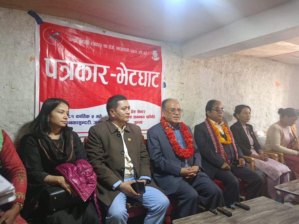 जुम्लाको सिञ्जा पुगेका पूर्वप्रधानमन्त्री समेत रहेका प्रचण्डले पत्रकार भेटघाट कार्यक्रममा बोल्दै सो कुरा बताएका हुन् ।