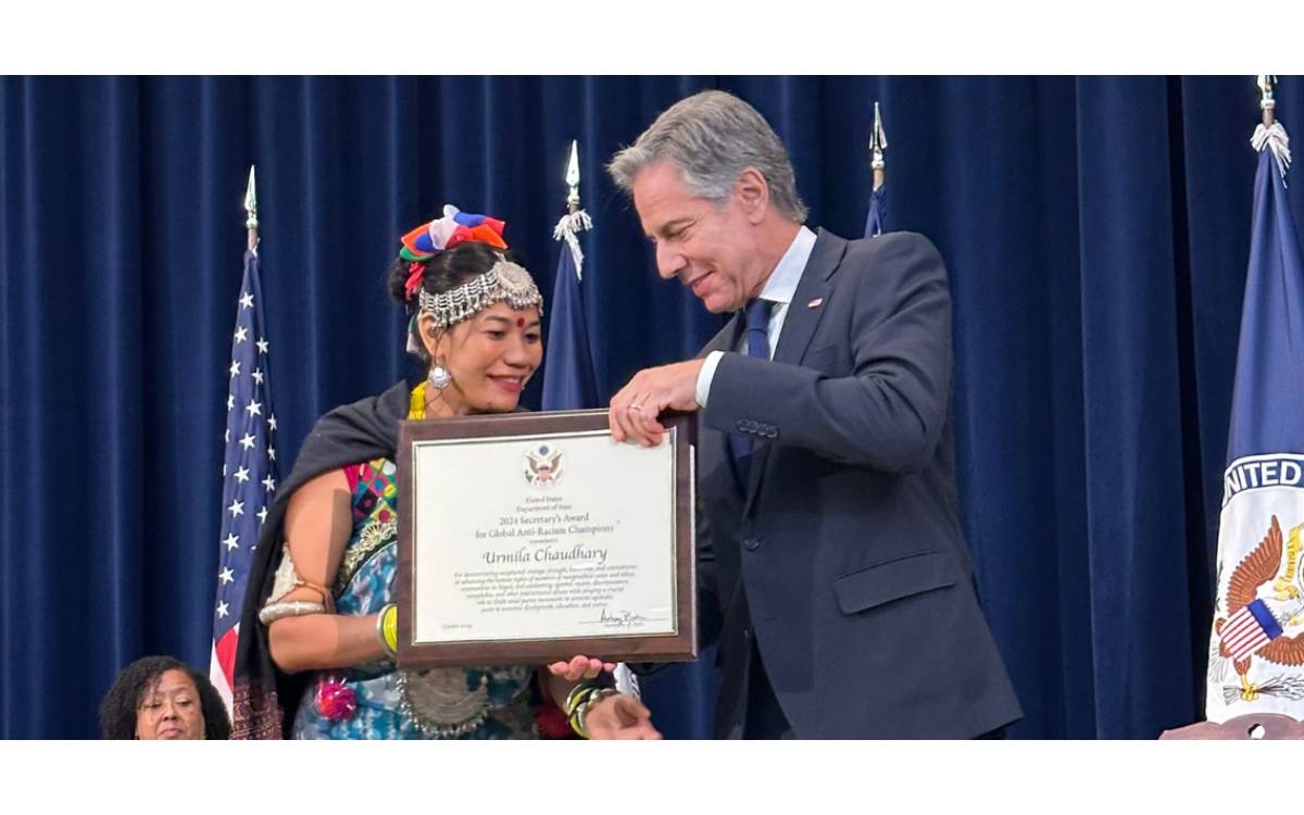 अमेरिकी विदेशमन्त्री एन्टोनी व्लिङ्केनले चौधरीसहित ६ देशका सामाजिक अभियन्तालाई सोमबार अमेरिकामा आयोजित कार्यक्रममा उक्त अवार्ड प्रदान गरेका हुन् ।