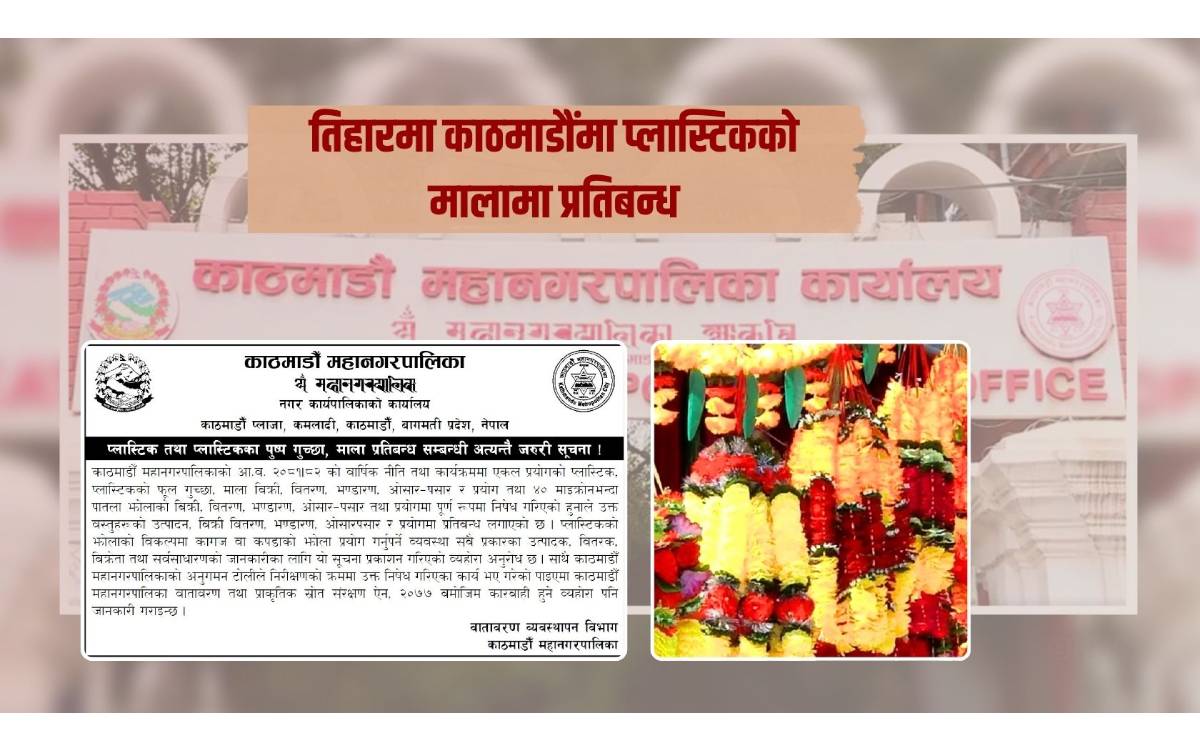 महानगरले बिहीबार एक सूचना प्रकाशित गर्दै आफ्नो वार्षिक नीति तथा कार्यक्रममा नै एकल प्रयोगको प्लास्टिक, प्लास्टिकको फूल गुच्छा, माला बिक्री, वितरण, भण्डारण, ओसार–पसार र प्रयोग तथा ४० माइक्रोनभन्दा पातला झोलाको बिक्री, वितरण, भण्डारण र प्रयोगमा पूर्ण रूपमा निषेध गरिएको स्मरण गराएको हो ।