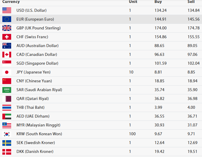 युरोपियन युरो एकको खरिददर एक सय ४४ रुपैयाँ ९१ पैसा र बिक्रीदर एक सय ४५ रुपैयाँ ५६ पैसा, युके पाउण्ड स्टर्लिङ एकको खरिददर एक सय ७४ रुपैयाँ १० र बिक्रीदर एक सय ७४ रुपैयाँ ७८ पैसा, स्वीस फ्रयाङ्क एकको खरिददर एक सय ५४ रुपैयाँ ८६ पैसा र बिक्रीदर एक सय ५५ रुपैयाँ ५५ पैसा कायम गरिएको छ ।