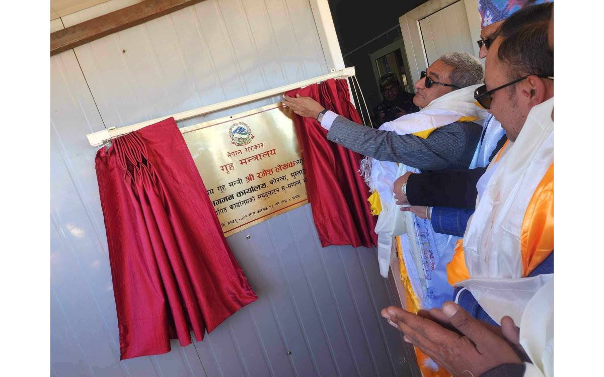 गृहमन्त्री रमेश लेखकले आज कार्यालयको शुभारम्भ गर्दै अध्यागमन कार्यालय सञ्चालनसँगै चीनसँगको द्विपक्षीय सम्बन्ध अझै प्रगाढ बन्ने विश्वास व्यक्त गरे । उनले दुई देशका नागरिक आवतजावतसँगै द्विपक्षीय व्यापार अभिवृद्धिका लागि अध्यागमन कार्यालय महत्वपूर्ण हुने बताए । समुद्र सतहदेखि ४ हजार ६ सय ५० मिटर उचाइमा रहेको यो नाकाको गत वर्ष कात्तिक २७ गते चीनको सिगात्से प्रान्तको झोम्वा काउन्ट्रीका मेजेष्ट्री नुर्वु छिरिङ र मुस्ताङका प्रमुख जिल्ला अधिकारी जनकराज पन्तले संयुक्त रुपमा उद्घाटन गरिएको थियो ।
