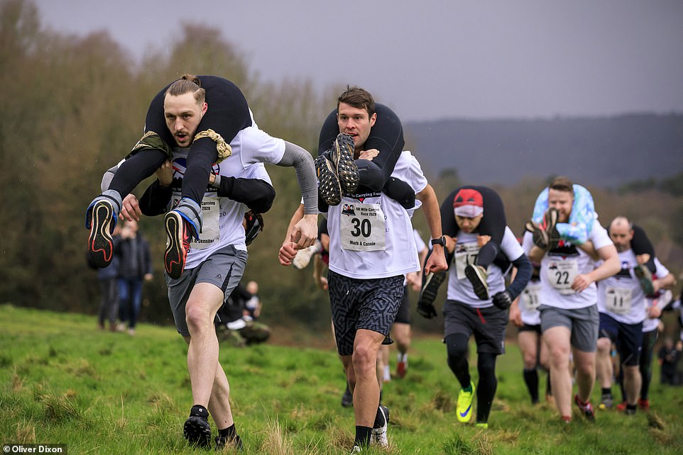 धेरै दर्शकहरुकाबीच उक्त प्रतियोगितामा पुरुषहरुले आफ्नो श्रीमतीलाई काँधमा बोकेर हिँड्ने गर्दछन् । उनीहरुले श्रीमतीलाई काँधमा आलूको बोरा बोकेझैँ काठको मुढा नाघ्दै, पानीको आहाल पार गर्ने गर्दछन् । २५४ मिटर दुरीमा श्रीमती बोकेर अफ्ठयारो बाटो पार गर्न सक्ने व्यक्तिले नै उक्त प्रतियोगिता जित्न सक्नेछ ।