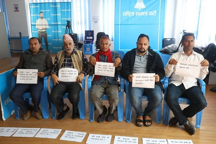 काठमाडौं । पार्टी सभापति रवि लामिछाने पक्राउ गरेको लामो समय बितिसक्दा पनि पार्टीले कुनै ठोस निर्णय लिन नसकेको भन्दै रास्वपाका समर्थक दबाब दिन घण्टीघरमै पुगेका छन्। रास्वपा पार्टी कार्यालयमा अहिले प्लेकार्डसहित समर्थक तथा कार्यकर्ता बसिरहेका छन्।