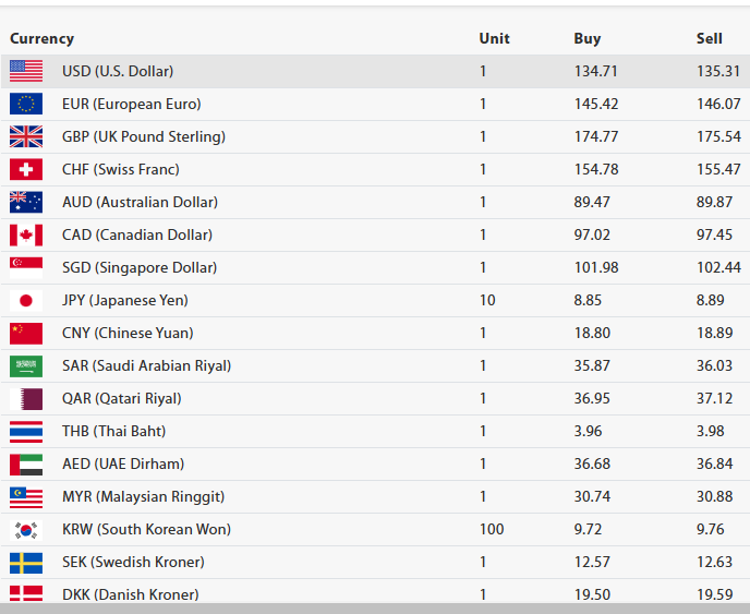 युरोपियन युरो एकको खरिददर एक सय ४५ रुपैयाँ ४२ पैसा र बिक्रीदर एक सय ४६ रुपैयाँ ०७ पैसा, युके पाउण्ड स्टर्लिङ एकको खरिददर एक सय ७४ रुपैयाँ ७७ पैसा र बिक्रीदर एक सय ७५ रुपैयाँ ५४ पैसा, स्वीस फ्र्याङ्क एकको खरिददर एक सय ५४ रुपैयाँ ७८ पैसा र बिक्रीदर एक सय ५५ रुपैयाँ ४७ पैसा कायम गरिएको छ ।