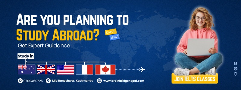 काठमाडौं । विदेशमा अध्ययन गर्न चाहने विद्यार्थीहरुका लागि सही परामर्श दिने उद्देश्यका साथ स्थापना भएको ब्रेनब्रिज एजुकेसनले आफ्नो सेवा सुरु गरेको छ । आफ्नो सेवा सुरुवातको अवसर पारेर ब्रेनब्रिज एजुकेसनले विद्यार्थीहरुलाई भाषा शिक्षण कार्यक्रमहरु आईईएलटीएस, पीटीई, स्याटलगायतमा विशेष छुट पनि दिने भएको छ ।
