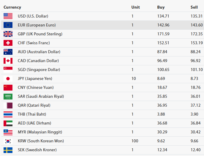 त्यस्तै,युरोपियन युरो एकको खरिददर एक सय ४२ रुपैयाँ ९६ पैसा र बिक्रीदर एक सय ४३ रुपैयाँ ६० पैसा, युके पाउण्ड स्टर्लिङ एकको खरिददर एक सय ७१ रुपैयाँ ५९ पैसा र बिक्रीदर एक सय ७२ रुपैयाँ ३५ पैसा, स्वीस फ्रयाङ्क एकको खरिददर एक सय ५२ रुपैयाँ ९१ पैसा र बिक्रीदर एक सय ५३ रुपैयाँ १९ पैसा कायम गरिएको छ।
