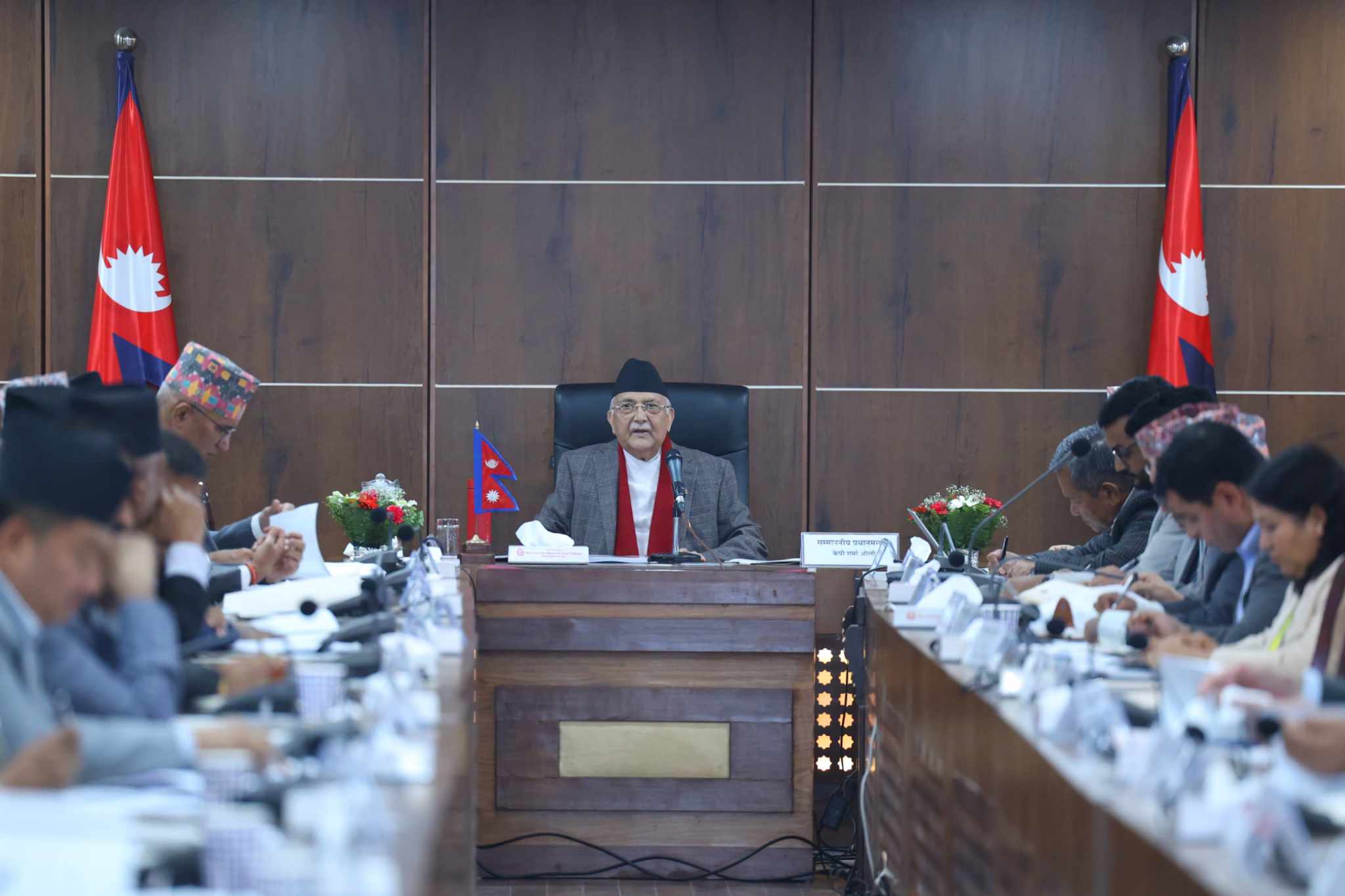 प्रधानमन्त्री केपी शर्मा ओलीको अध्यक्षतामा प्रधानमन्त्री तथा मन्त्रिपरिषदको कार्यालयमा जारी बैठकमा राष्ट्रिय गौरवका आयोजना र आयोजनाहरुका विद्यमान समस्या, तिनका कारण र समाधानका उपायबारे छलफल गर्न विभिन्न १५ कार्यसूची राखिएका छन् ।