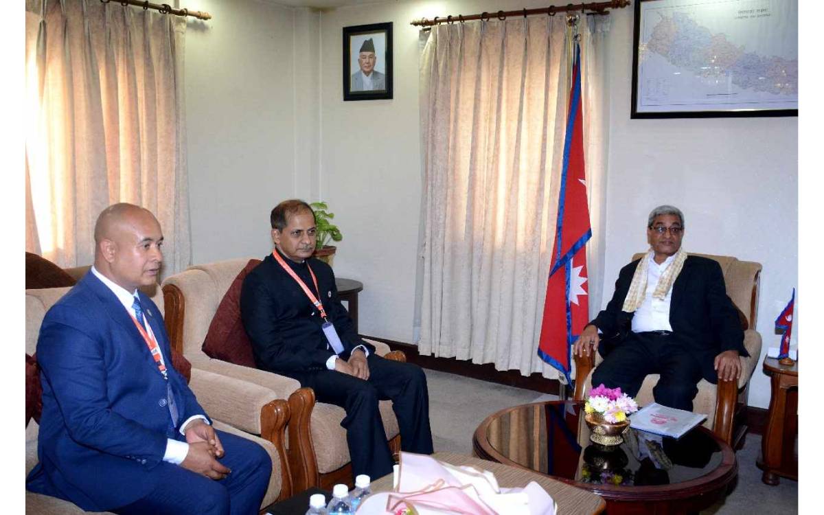 काठमाडौं । गृहमन्त्री रमेश लेखकसँग भारतीय सशस्त्र सीमा सुरक्षा बल (एसएसबी) का महानिर्देशक अमृतमोहन प्रसाद नेतृत्वको टोलीले भेटवार्ता गरेको छ ।
