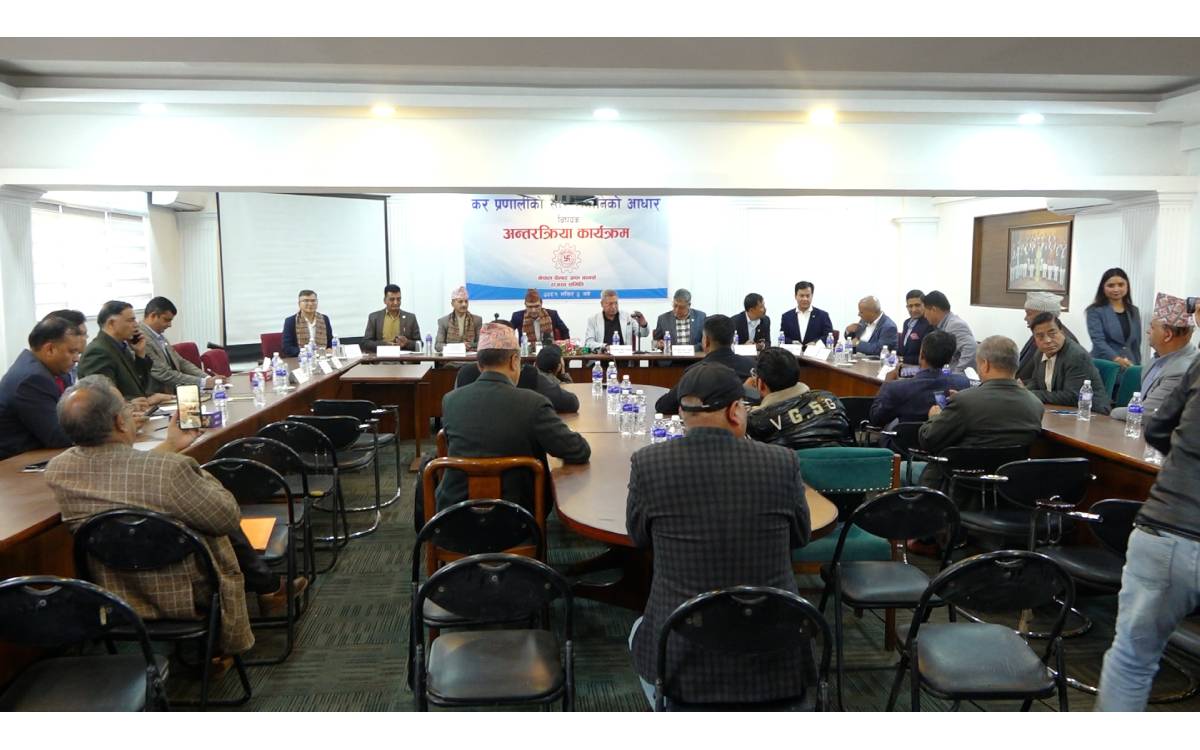 काठमाडौं । नेपाल चेम्बर अफ कमर्सले राजश्व नीति र कर प्रणालीबारे वृहत् अन्तरक्रिया सम्पन्न गरेको छ । काठमाडौंको जमलस्थित चेम्बर भवनमा आयोजित कार्यक्रममा आन्तरिक राजश्व विभाग, निजी क्षेत्रका प्रतिनिधि लगायत सरोकारवाला निकायलाई बोलाएर चेम्बरले कर प्रणालीमा देखिएका चुनौती र सम्बोधन गर्नुपर्ने विषयबारे वृहत् अन्तरक्रिया गरेको हो ।