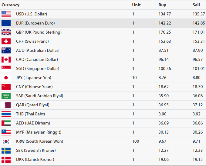 यस्तै जापानी येन १० को खरिददर आठ रुपैयाँ ७६ पैसा तथा बिक्रीदर आठ रुपैयाँ ८० पैसा, चिनियाँ युआन एकको खरिददर १८ रुपैयाँ ६२ पैसा तथा बिक्रीदर १८ रुपैयाँ ७० पैसा, साउदी रियाल एकको खरिददर ३५ रुपैयाँ ९० पैसा तथा बिक्रीदर ३६ रुपैयाँ ०६ पैसा, कतारी रियाल एकको खरिददर ३६ रुपैयाँ ९५ पैसा तथा बिक्रीदर ३७ रुपैयाँ १२ पैसा तय भएको छ । यस्तै मलेसियन रिङ्गेट एकको खरिददर ३० रुपैयाँ १३ पैसा तथा बिक्रीदर ३० रुपैयाँ २६ पैसा, दक्षिण कोरियाली वन १०० को खरिददर नौ रुपैयाँ ६७ पैसा तथा बिक्रीदर नौ रुपैयाँ ७१ पैसा निर्धारण भएको केन्द्रीय बैंकले जनाएको छ ।
