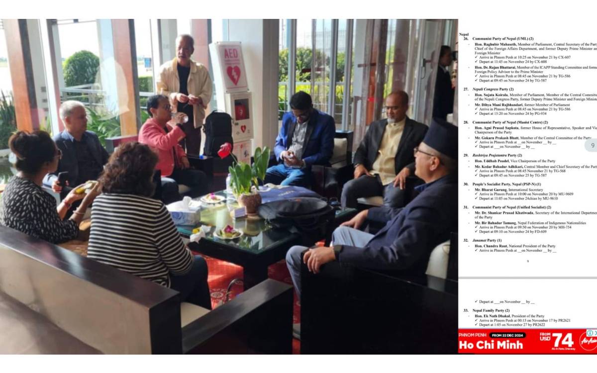 काठमाडौं । नेपालमा विभिन्न राजनीतिक दलका नेताहरूको जम्बो टोली कम्बोडिया प्रस्थान गरेको छ । नेकपा एमाले, नेपाली कांग्रेस, राप्रपासहितका दलका नेताहरू बुधबार राति कम्बोडिया गएका हुन। नेताहरू कम्बोडिया गएको विषयमा नेपालमा भने चासो बढेको छ ।