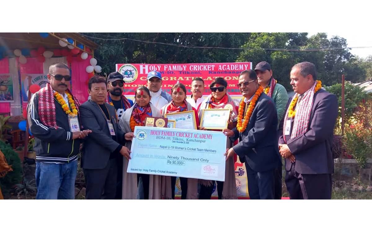महेन्द्रनगरस्थित होली फेम्ली क्रिकेट एकेडेमीले यु-१९ महिला क्रिकेट टोलीका सदस्य सावित्री धामी र स्नेहा महरालाई आज  ३०/३० हजारसहित सम्मान गरेको हो । त्यसैगरी नेपाली महिला क्रिकेट टोलीकी उपकप्तान विन्दु रावललाई  ५० हजार र टोलीका सहायक प्रशिक्षक जानकी भट्टलाई ३० हजार नगदसहित दोसल्ला ओढाएर सुदूरपश्चिम प्रदेशका आर्थिक मामिलामन्त्री बहादुरसिंह थापाले सम्मान गरे ।