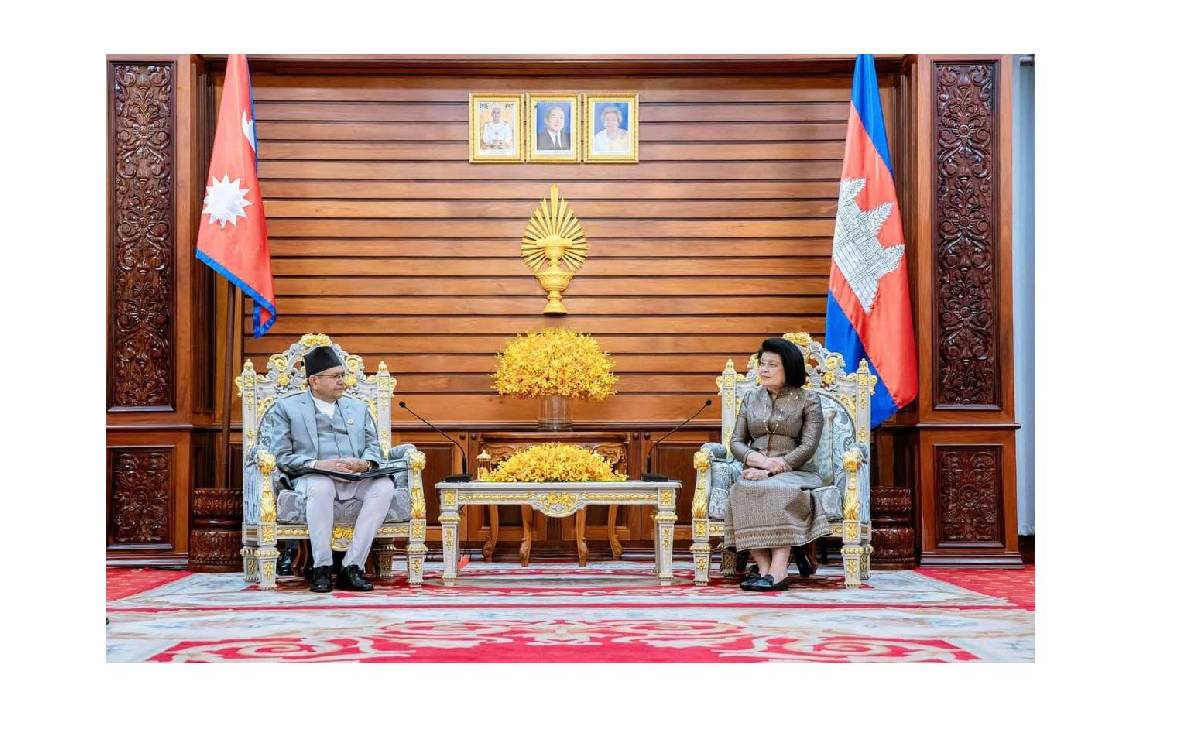 काठमाडौं । पाँच दिने कम्बोडिया भ्रमणमा रहेका सभामुख देवराज घिमिरेले संसदीय भेटघाट सुरु गरेका छन् । सभामुख घिमिरेले शनिबार साँझ कम्बोडियन समकक्षी तल्लो सदन नेसनल एसेम्ब्लीका अध्यक्षसँग शिष्टाचार भेट गरेको सभामुख घिमिरेको सचिवालयले जनाएको छ ।