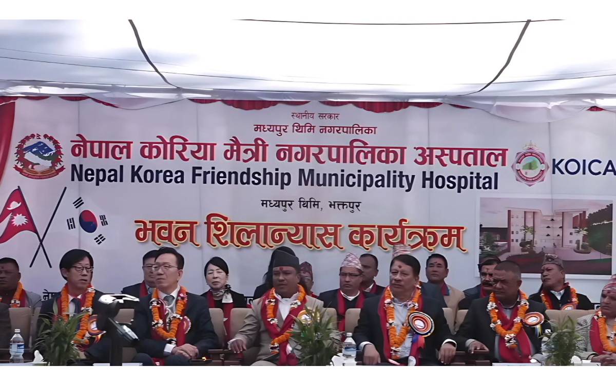 काठमाडौं । नेपाल–कोरियामैत्री नगरपालिका अस्पतालको नयाँ भवन शिलान्यास गरिएको छ । सोमबार भक्तपुरको मध्यपुर थिमिमा आयोजित एक कार्यक्रमकाबीच उपप्रधान तथा सहरीविकास मन्त्री प्रकाशमान सिंहको उपस्थितिमा भवनको शिलान्यास गरिएको हो ।