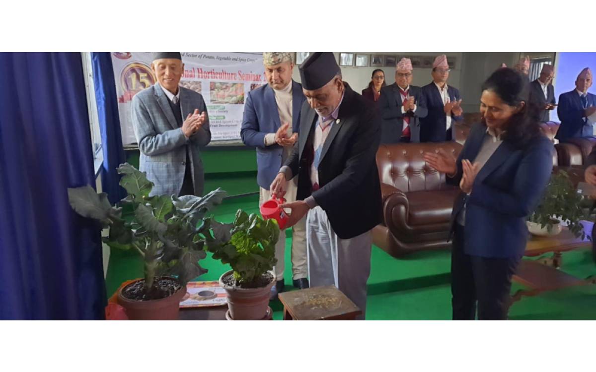 काठमाडौं । १५ औँ राष्ट्रिय हर्टिकल्चर सम्मेलन काठमाडौमा सुरु भएको छ । नेपाल हर्टिकल्चर सोसाइटी र राष्ट्रिय आलु तरकारी तथा मसलाबाली विकास केन्द्रको संयुक्त आयोजनामा सुरु भएको सम्मेलनको उद्घाटन कृषि तथा पशुपन्छी विकासमन्त्री रामनाथ अधिकारीले गरे ।