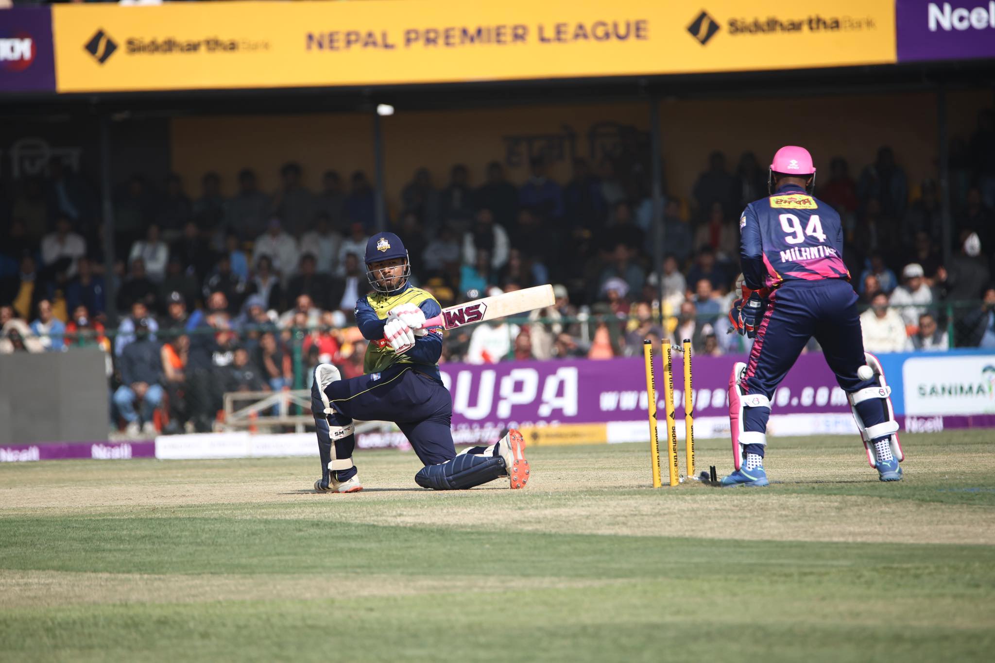 यस्तै एनपिएलमा पहिलो चौका प्रहार गर्ने खेलाडी लोकेश बनेका छन् । लोकेश छ बलमा एक चौकासहित पाँच रन बनाएर आउट भएका छन् ।