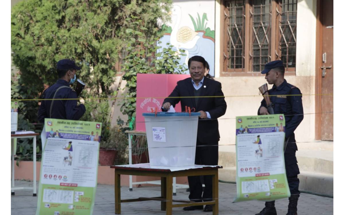 काठमाडौं । उपप्रधानमन्त्री एवं शहरी विकासमन्त्री प्रकाशमान सिंहले काठमाडौं महानगरपालिका १६ को वडाध्यक्षको निर्वाचनका लागि मतदान गरेका छन् । आइतबार बिहान उपप्रधानमन्त्री सिंहले पकनाजोलस्थित मतदान केन्द्रमा पुगेर मतदान गरेका हुन् ।