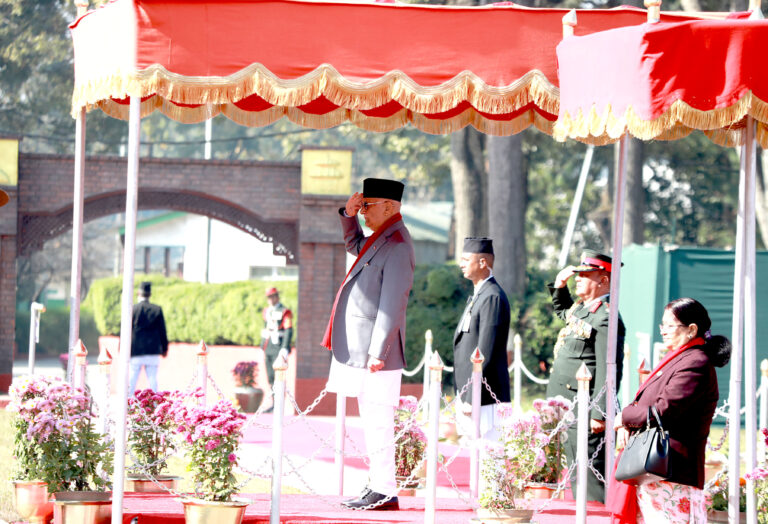 प्रधानमन्त्री ओलीलाई यसअघि नेपाली सेनाको एक टुकडीले सम्मान गारत अर्पण गरेको थियो ।