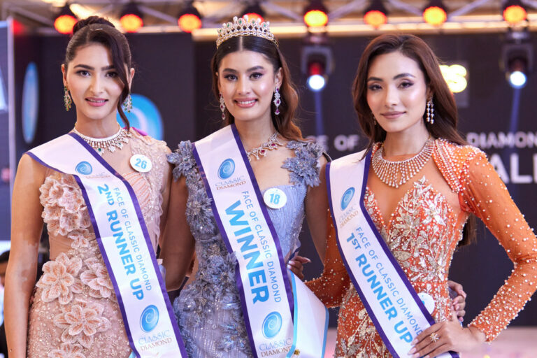 काठमाडौं । ‘फेस अफ क्लासिक डाइमन्ड’को पाँचौँ सिजनअन्तर्गत पूर्णिका सिजापतिले ‘फेस अफ क्लासिक डाइमन्ड २०२४’ को टाइटल जितेकी छन् । चर्चित गहना ब्रान्ड क्लासिक डाइमन्ड ज्वेलर्सले आयोजना गरेको फेसन र मोडलिङ प्रतियोगिताअन्तर्गतको ‘फेस अफ क्लासिक डाइमन्ड’ फ्रस्ट रनरअप स्मृति श्रेष्ठ र सेकेन्ड रनरअप उरुषा भण्डारी बनेका छन् ।
