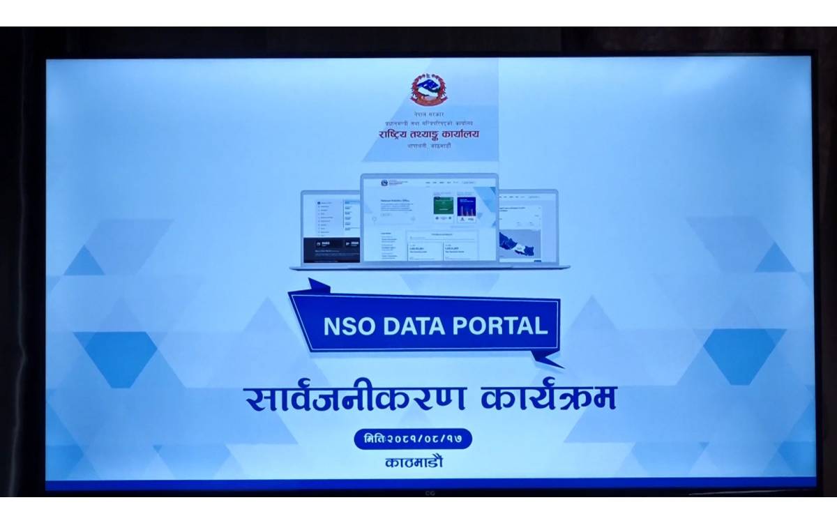 काठमाडौं । राष्ट्रिय तथ्यांक कार्यालयले ‘एनएसओ डाटा पोर्टल’ सञ्चालनमा ल्याएको छ । कार्यालयले उत्पादन गर्ने तथ्यांकहरूलाई थप उपयोगी र परिस्कृत गर्ने उद्देश्यले कार्यालयले सोमबार एक समारोहका बीच पोर्टल सार्वजनिक गरेको हो ।