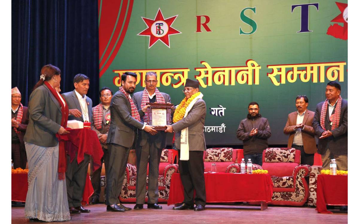 काठमाडौं। नेकपा माओवादी केन्द्रका अध्यक्ष पुष्पकमल दाहाल प्रचण्डलाई गणतन्त्र नायक सम्मानबाट सम्मानित गरिएको छ । कोषले यो वर्षदेखि गणतन्त्र स्थापनाका लागि योगदान गर्ने सेनानीहरुलाई गणतन्त्र सेनानी सम्मान प्रदान गर्न सुरु गरेको हो।