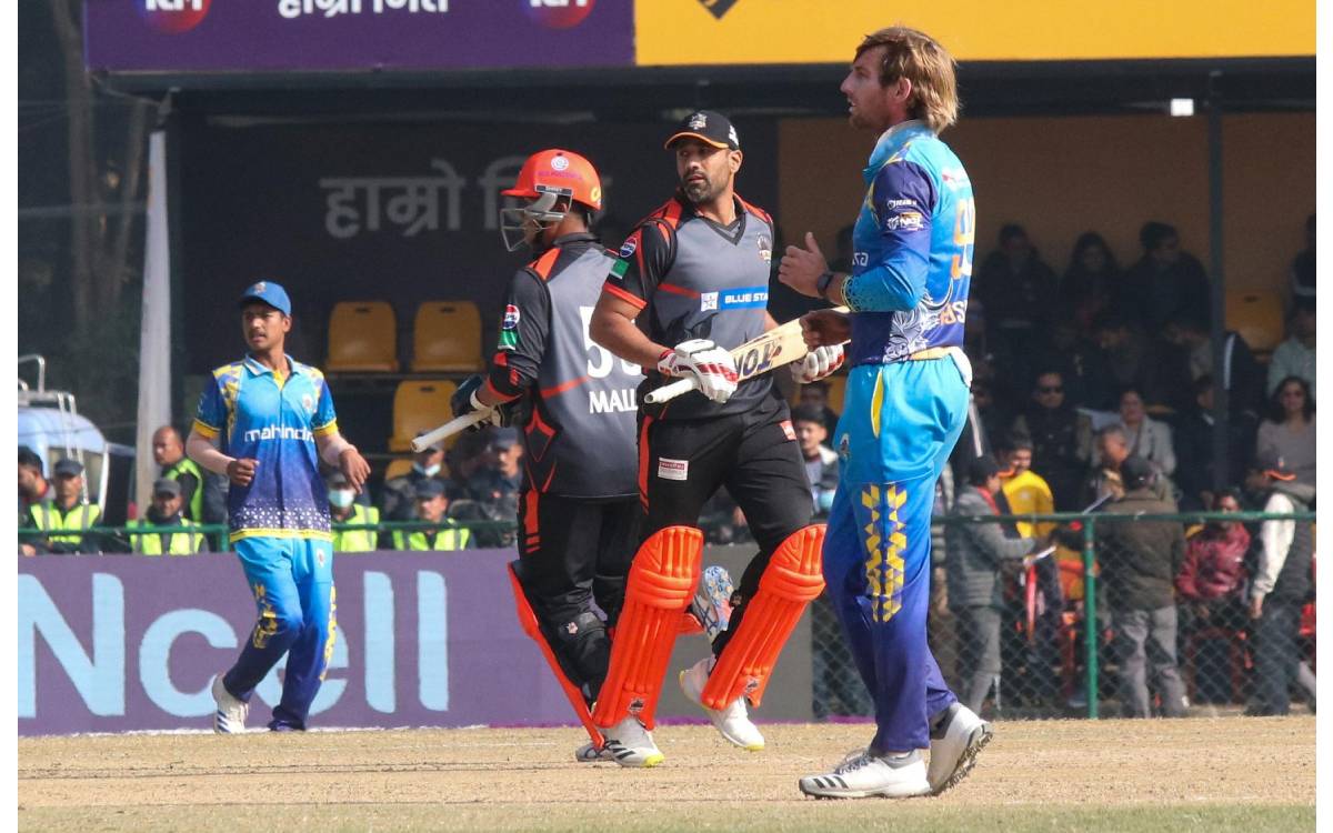 पावरप्लेको अन्तिम ओभरमा विपिन रावल ११ रनमा जिशन मक्सुदबाट बोल्ड भएका थिए यस्त, १७औं ओभरमा विपिन शर्माको एलबीडब्लूको धरापमा पर्नुअघि लोफ्टी इटनले ९ रन जोडेका थिए । शरद भेषावकर ६ रनमा नटआउट रहे । बलिङमा कर्णालीका विपिन शर्माले तीन विकेट लिएका थिए । । जिशन मक्सुदले दुई, कप्तान सोमपाल कामी र नन्दन यादवले १–१ विकेट लिएका थिए ।