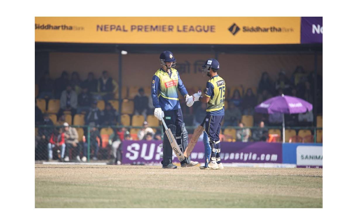 काठमाडौं । नेपाल प्रिमियर लिग (एनपीएल) अन्तर्गत आज बिहीबार भएको दोस्रो खेलमा जनकपुर बोल्ट्सले काठमान्डु गुर्खाजलाई ५ विकेटले हराएको छ । योसँगै जनकपुर बोल्ट्स प्लेअफमा पुग्ने पहिलो टिम बनेको छ । जनपुरले ६ खेलबाट ५ मा जित र १ मा हार बेहोर्दै १० अंक बटुलेको छ । योसँगै टोलीले कम्तीमा शीर्ष चार स्थान पक्का गरेको हो ।