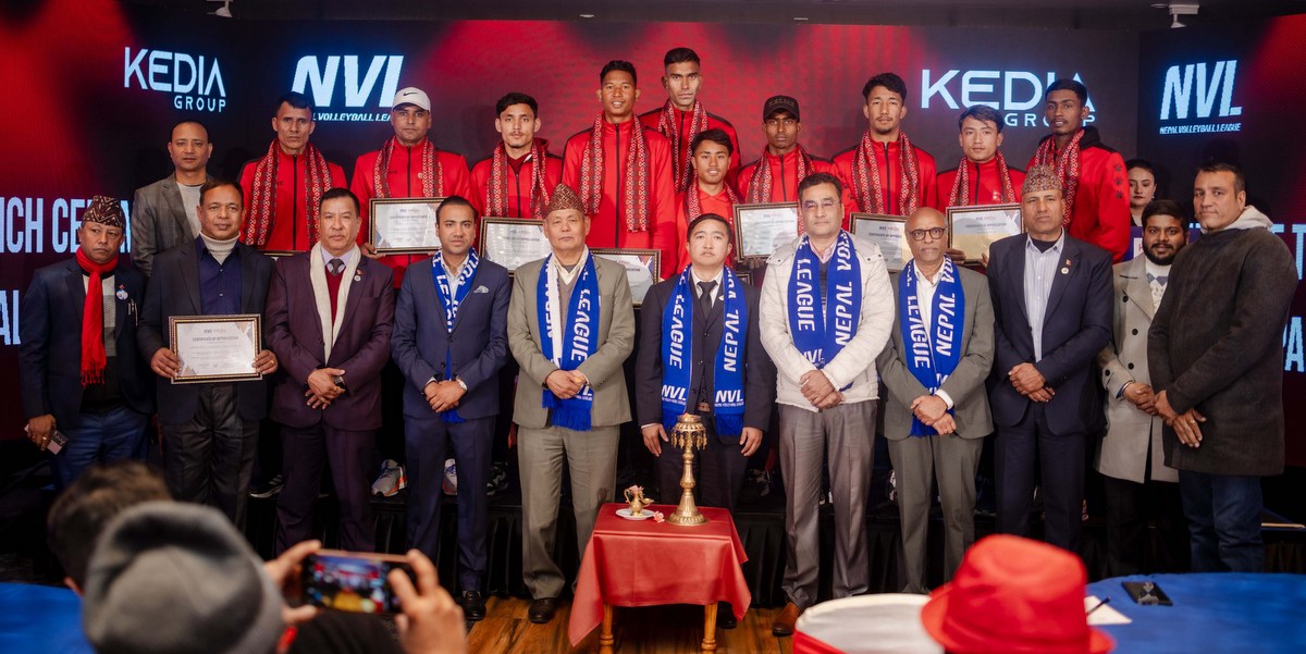 काठमाडौं । केडिया ग्रुपले भलिबलको पुरुष फ्रेन्चाइज लिग नेपाल भलिबल लिग (एनभीएल) को लोगो र स्लोगन सार्वजनिक गरेको छ । मङ्गलवार एक कार्यक्रममार्फत युवा तथा खेलकुद मन्त्री तेजुलाल चौधरीको उपस्थितिमा भलिबल लिगको लोगो र स्लोगान सार्वजनिक गरिएको हो ।
