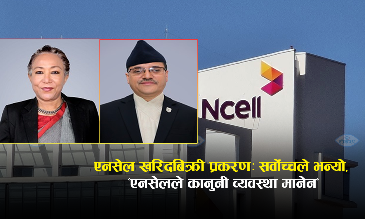 काठमाडौं । एनसेलको खरिदबिक्री रोक्न माग गर्दै दायर रिटमा सर्वोच्च अदालतले फैसला सुनाउँदै एनसेलले कानुनको पालना नगरेको बताएको छ । सर्वोच्चमा फैसलामा एनसेलले कानुनी प्रक्रिया पूरा नगरेको भन्दै विधिसम्मतरुपमा सेवा सञ्चालन गर्न निर्देशनात्मक आदेशसमेत जारी गरेको छ ।