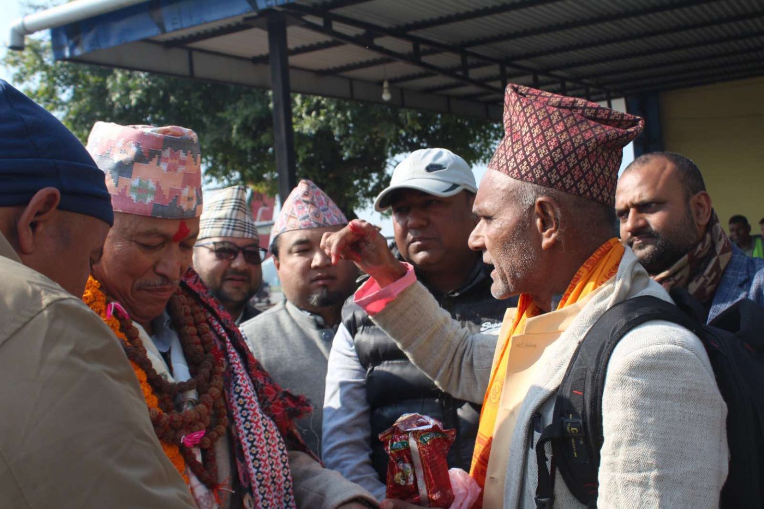 उनलाई विराटनगर विमानस्थलमा स्वागत गर्न एकीकृत समाजवादीका नेता वसिम आलाम नेतृत्वको समूह विमानस्थल पुगेका हुन् ।