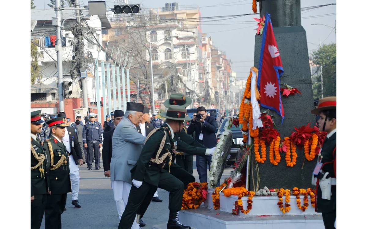 प्रमुख प्रशासनिक भवन सिंहदरबारको पश्चिम मूलगेटमास्थित पृथ्वीनारायण शाहको सालिक रहेको स्थानमा आयोजित कार्यक्रममा नेपाली सेनाले सम्मान गारत अर्पण गरेको थियो ।