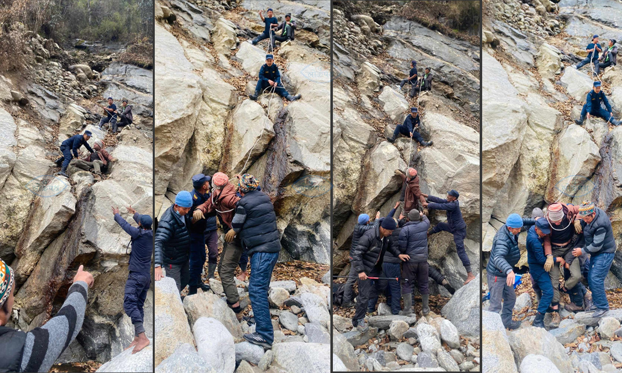 काठमाडौं । सगरमाथाको आधार शिविरबाट फर्किने क्रममा लडेर भीरमा अड्किएका जर्मन नागरिकको सकुशल उद्धार गरिएको छ ।