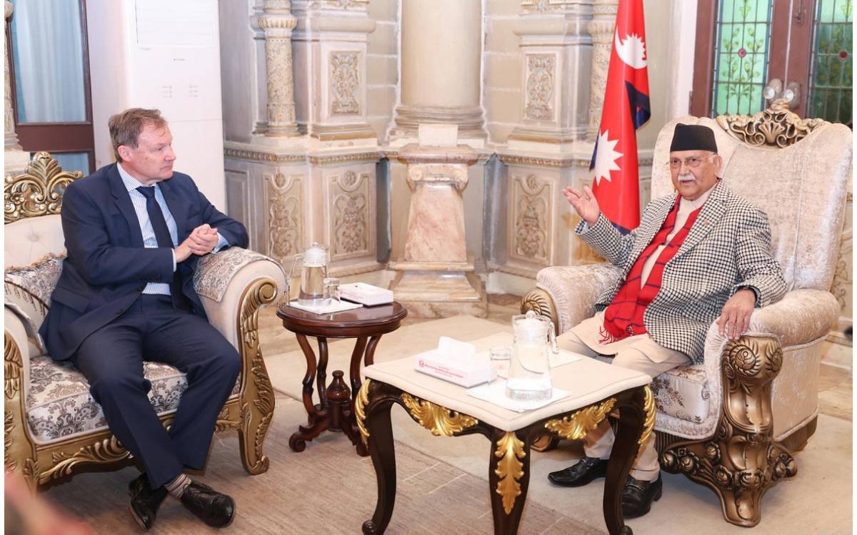 काठमाडौं । प्रधानमन्त्री केपी शर्मा ओलीसँग नेपालका लागि संयुक्त अधिराज्य बेलायतका राजदूत रोब फेनले आज शिष्टाचार भेट गरेका छन् ।