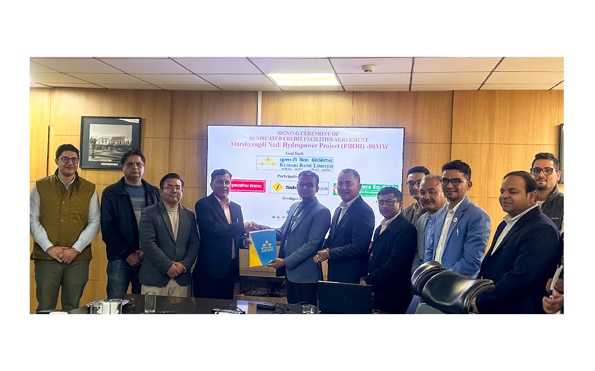 काठमाडौं । मर्स्याङ्दी नदीमा एमए पावर प्रालिले निर्माण गर्ने ९० मेगावाटको मर्स्याङ्दी नदी अर्धजलाशययुक्त जलविद्युत् आयोजनामा कुमारी बैक लिमिटेडको अगुवाइमा लगानी सम्बन्धी सम्झौता सम्पन्न भएको छ ।