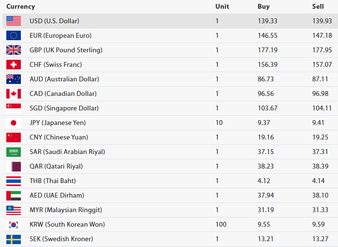 यस्तै, थाई भाट एकको खरिददर चार रुपैयाँ १२ पैसा र बिक्रीदर चार रुपैयाँ १४ पैसा, युएई दिराम एकको खरिददर ३७ रुपैयाँ ९४ पैसा र बिक्रीदर ३८ रुपैयाँ १० पैसा, मलेसियन रिङ्गेट एकको खरिददर ३१ रुपैयाँ १९ पैसा र बिक्रीदर ३१ रुपैयाँ ३३ पैसा, साउथ कोरियन वन एक सयको खरिददर नौ रुपैयाँ ५५ पैसा र बिक्रीदर नौ रुपैयाँ ५९ पैसा, स्विडिस क्रोनर एकको खरिददर १३ रुपैयाँ २१ पैसा र बिक्रीदर १३ रुपैयाँ २७ पैसा र डेनिस क्रोनर एकको खरिददर १९ रुपैयाँ ६५ पैसा र बिक्रीदर १९ रुपैयाँ ७३ पैसा तोकिएको छ ।