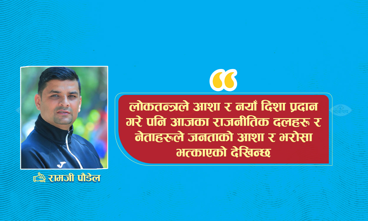 नेपालले २३८ वर्ष राजतन्त्रको शासन भोगेपछि स्वतन्त्रता, समानता र समृद्धिको खोजीमा लोकतन्त्र अंगालेको इतिहासले हामीलाई धेरै महत्वपूर्ण पाठ सिकाएको छ । राजतन्त्रले केही उचित क्षणहरू प्रदान गरे तापनि जनताको वास्तविक अपेक्षा र जीवनका आवश्यकता पूरा गर्न सकेन । लोकतन्त्रले आशा र नयाँ दिशा प्रदान गरे पनि आजका राजनीतिक दलहरू र नेताहरूले जनताको आशा र भरोसा भत्काएको देखिन्छ । पुराना र नयाँ दलहरूबिचको निरन्तर मतभेद, नेतृत्वमा स्वार्थ र अराजक शैलीले गर्दा जनता निराश र असन्तुष्ट भएका छन् । यसको कारण मात्रै राजनीतिक परिवर्तन होइन, तर व्यवस्थापन र नेतृत्वमा सुधार आवश्यक भएको स्पष्ट छ ।