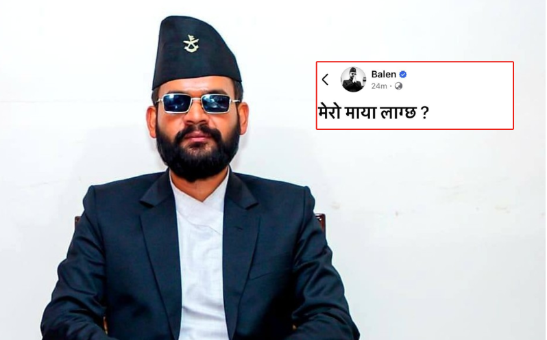 शनिबार राति १० बजे आसपास पनि मेयर बालेनको फेसबुकमा एउटा स्ट्याटस आयो । ‘मेरो माया लाग्छ ?’ भन्दै आफ्नो आधिकारिक फेसबुकमा लेखे । ‘पब्लिक आइकन’ भएका कारण उनकै स्टाइलमा धेरै सामाजिक सञ्जाल प्रयोगकर्ताहरुले सोही प्रकृतिको प्रेमिल स्ट्याटस लेखे ।