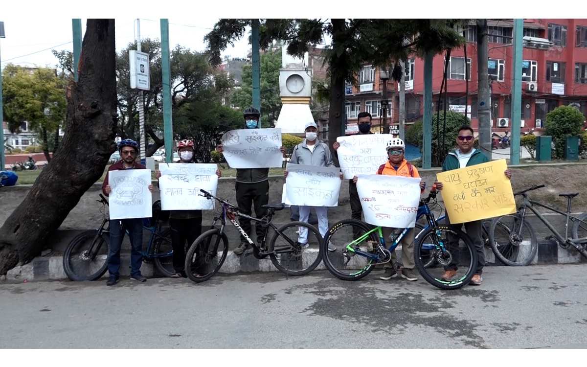 प्रदर्शनमा सहभागीहरूले स्वच्छ हावाको लागि साइकल, वायु प्रदूषण घटाउन वर्षाकै भर, सरकार खोइ रु खोइ स्वच्छ हावा, हिँडौँ, साइकल चढौँ, आकाश निलो बनाऔँ, विश्वकै सबैभन्दा प्रदूषित वायुप्रदुषण यता छ, काठमाडौंबाट चुनाव जितेका सांसद कता छन् रु लगायतका प्लेकार्ड बोकेर प्रदर्शन गरेका हुन् ।