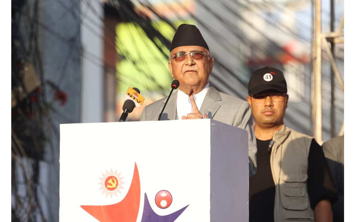 उनले भने, ‘यतिबेला नेकपा (एमाले) र नेपाली कांग्रेसबीच बनेको संयुक्त सरकार एउटा संकल्पका साथ बनेको सरकार हो । यो स्थिरता र स्थायित्वका लागि बनेको सरकार हो । र यसले स्थिरता र स्थायित्व दिन्छ । त्यही ध्याउन्नमा अगाडि बढिरहेको छ । सरकारको बारेमा धेरै चिन्ता गर्ने होइन । चुनावको बारेमा चिन्ता गर्नुपर्दछ । त्यसैकारण नेकपा (एमाले) ले सरकार बनाऊ र सरकार बचाउ भनेर कराएको छैन । नेकपा एमालेले जहिले पनि के भन्छ भने चुनाव हेरेको हुन्छ । हामीले ०७० को चुनाव हेर्यौँ । ०७४को चुनाव भन्यौँ, ०७९ को चुनाव भन्यौँ र ०८४ को चुनाव भनिरहेका छौँ । मिसन ०८४ भनेका छौँ । म साथीहरूलाई आग्रह गर्न चाहन्छु ढुक्कले मिसन ०८४ मा लाग्नुस् । सरकार चलाउने, सरकारको नेतृत्व गर्ने काममा अहिलेको संसद्को बनावट अनुसार देशलाई ठिक ढंग अगाडि बढाउने प्रयास नेकपा एमालेले गर्नेछ । त्यस कारण यस कुरामा चिन्ता नगर्नुस् । मिसन ०८४ मा ध्यान दिनुस् ।’ स्वदेशी तथा विदेशी तत्त्वहरू मुलुकलाई प्रतिगमनतिर धकेल्ने काम गरिरहेको प्रधानमन्त्री ओलीको आरोप छ ।