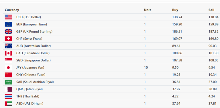 यस्तै, जापानी येन १० को खरिददर नौ रूपैयाँ ५० पैसा र बिक्रीदर नौ रूपैयाँ ५४ पैसा तोकिएको छ । चिनियाँ युआन एकको खरिददर १९ रूपैयाँ २५ पैसा र बिक्रीदर १९ रूपैयाँ ३४ पैसा, साउदी अरेबियन रियाल एकको खरिददर ३६ रूपैयाँ ८४ पैसा र बिक्रीदर ३७ रूपैयाँ, कतारी रियाल एकको खरिददर ३७ रूपैयाँ ९२ पैसा र बिक्रीदर ३८ रूपैयाँ ०९ कायम भएको छ ।