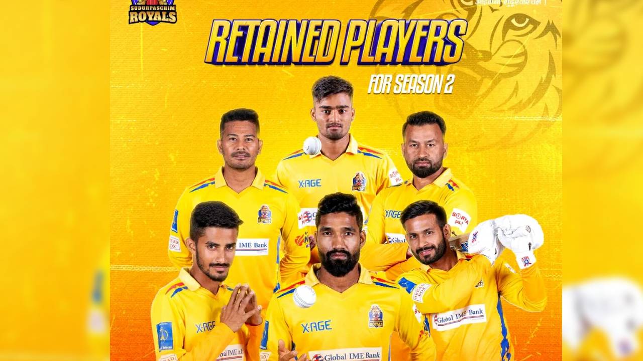 काठमाडौं । पहिलो संस्करणको नेपाल प्रिमियर लिग (एनपिएल) टी–२० क्रिकेट प्रतियोगिताको उपविजेता टोली सुदूरपश्चिम रोयल्सले आगामी सिजनका लागि ६ खेलाडी रिटेन गरेको छ ।