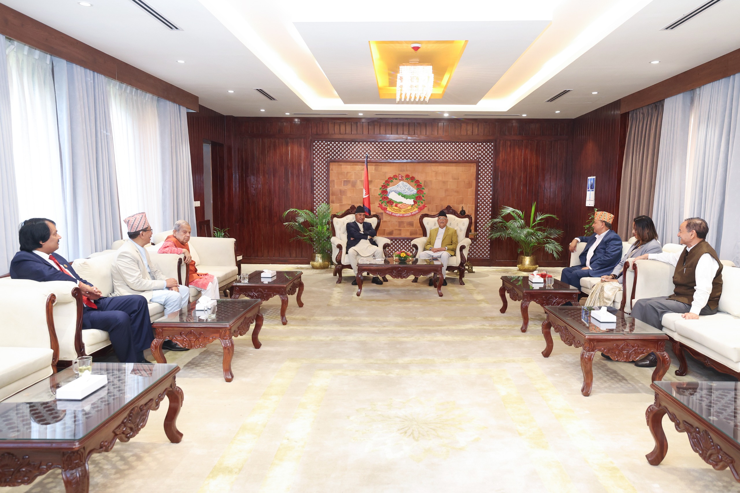बैठकमा प्रधानमन्त्री केपी शर्मा ओली, नेपाली कांग्रेसका सभापति शेरबहादुर देउवा लगायत शीर्ष नेताहरुको उपस्थिति रहेको छ ।