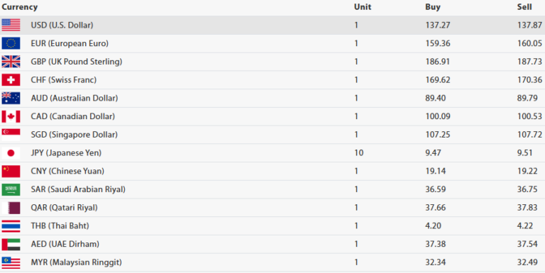 काठमाडौं । नेपाल राष्ट्र बैंकले आजका लागि विदेशी मुद्राको विनिमयदर निर्धारण गरेको छ । राष्ट्र बैंकका अनुसार अमेरिकी डलर एकको खरिददर १३७ रुपैयाँ २७ पैसा र बिक्रीदर १३७ रुपैयाँ ८७ पैसा निर्धारण गरिएको छ ।