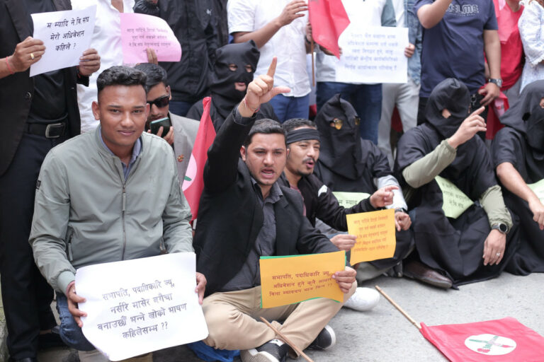 उनीहरूले कालो कपडाले शरीर र मुख छोपेर विरोध जनाएका छन् । मातृ पार्टीले दिएको जिम्मेवारी पूरा गर्न नसक्ने वर्तमान नेविसंघ नेतृत्वलाई पदमुक्त गरी विधान बमोजिम नयाँ कार्यसमिति गठन गर्न माग गरेका छन् ।