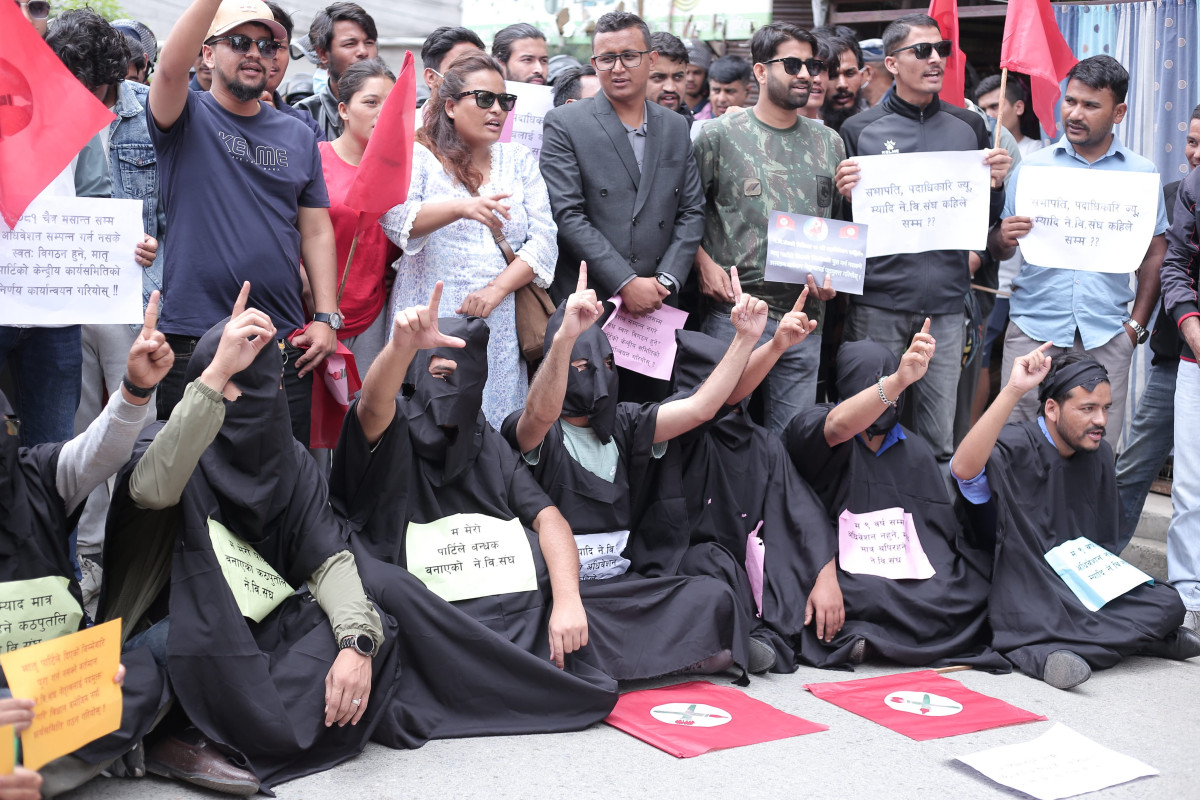 उनीहरूले कालो कपडाले शरीर र मुख छोपेर विरोध जनाएका छन् । मातृ पार्टीले दिएको जिम्मेवारी पूरा गर्न नसक्ने वर्तमान नेविसंघ नेतृत्वलाई पदमुक्त गरी विधान बमोजिम नयाँ कार्यसमिति गठन गर्न माग गरेका छन् ।