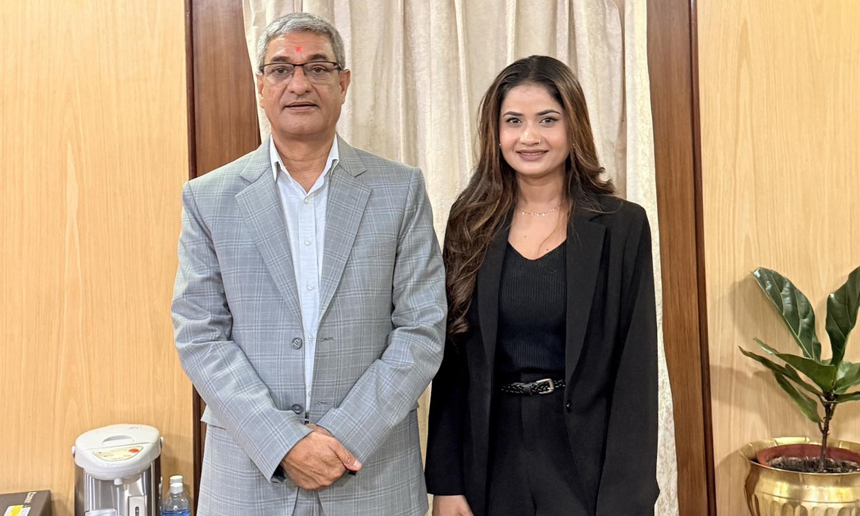 काठमाडौं । गायिक एलिना चौहानले गृहमन्त्री रमेश लेखकसँग भेट गरेकी छन् ।