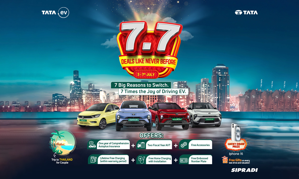 काठमाडौं । टाटा मोटर्सका लागि नेपालको एकमात्र आधिकारिक वितरक सिप्रदी ट्रेडिङ प्रालिले विशेष अफरसहितको ‘७.७ डिल्स लाइक नेभर विफोर’ नामक कार्यक्रम सञ्चालनमा ल्याएको छ ।
