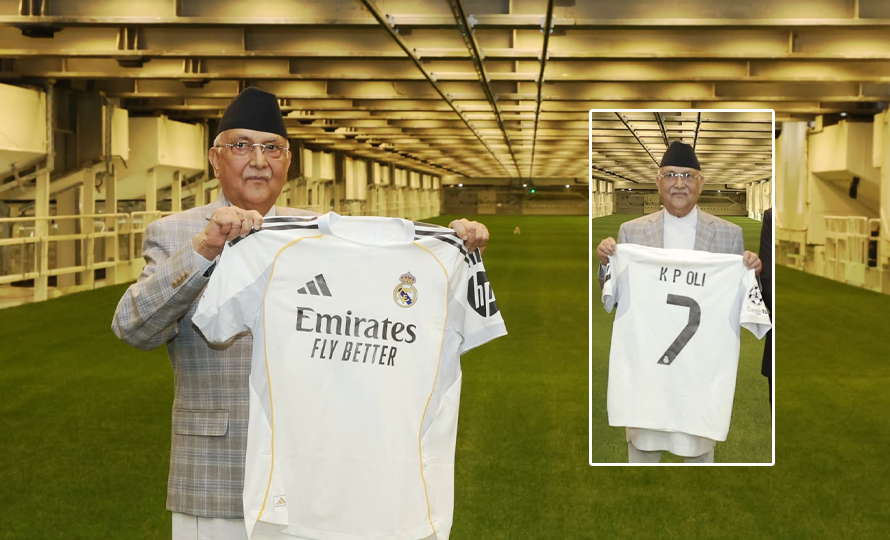 काठमाडौं । स्पेन भ्रमणमा रहेका प्रधानमन्त्री केपी शर्मा ओली स्पेनी महारथी फुटबल क्लब रियल मड्रिडको घरेलु मैदान सान्टियागो बर्नबाउ रंगशाला पुगेका छन् ।