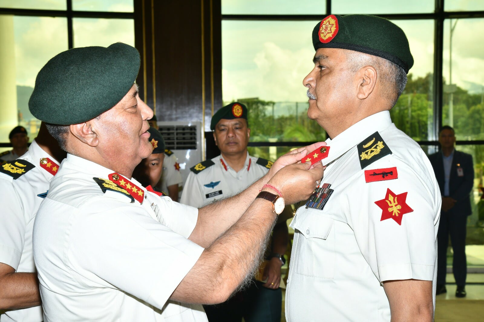 काठमाडौं । नेपाली सेनाका प्रधानसेनापति अशोकराज सिग्देलले उपरथी दर्जामा बढुवा भएका रवीन्द्र खत्रीलाई दर्ज्यानी चिह्न प्रदान गरेका छन् ।